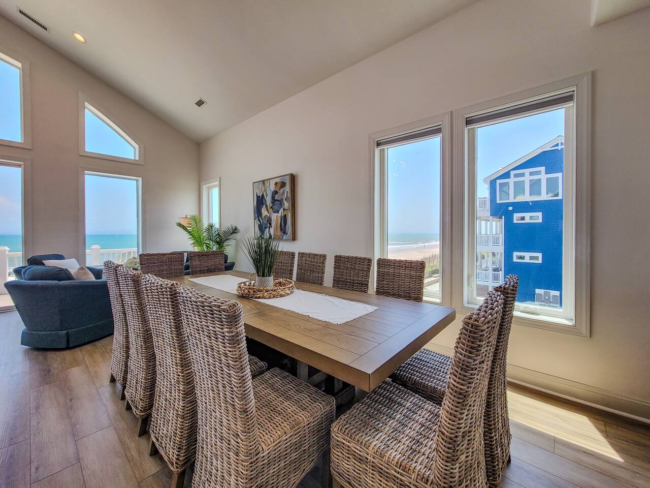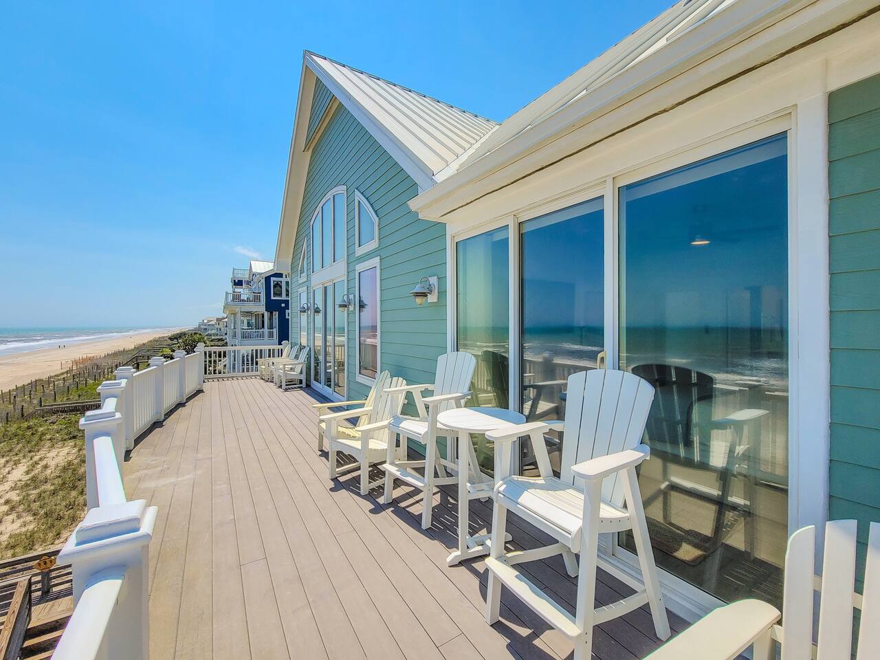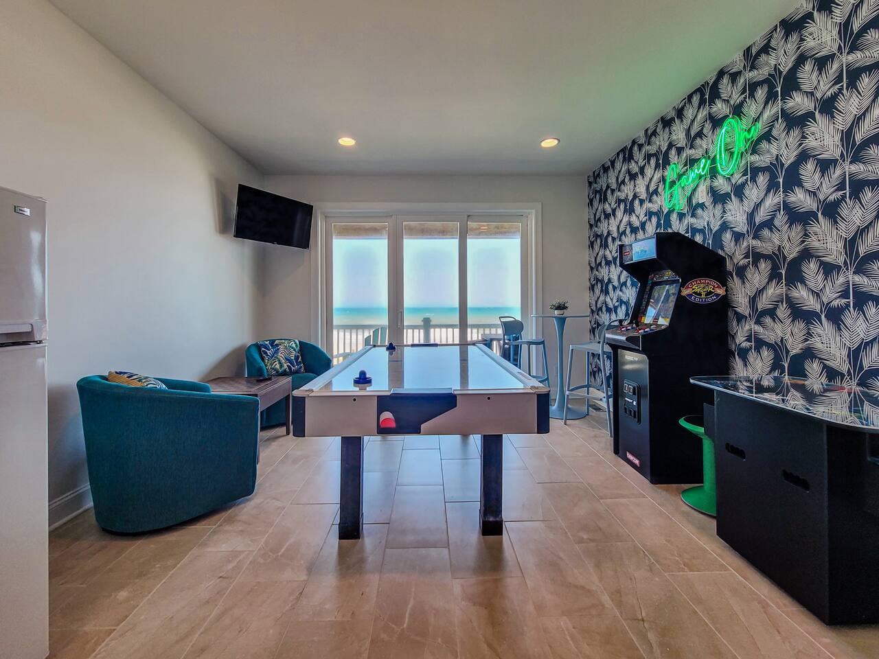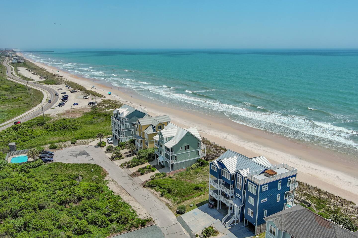 ๐ Bedrooms & Layout 6 Bedrooms | Sleeps 18+ 2 King Bedrooms, 3 Queen Bedrooms, 1 Bunk Room with 3 twins, 1 full, and 1 twin trundle, and Loft with queen sleeper sofa Bathrooms: 5 full bathrooms total, thoughtfully stocked with full-size shampoo, conditioner, and body wash + linens included! Floor 2: -King Bedroom with direct oceanfront balcony + ensuite bathroom -Queen Bedroom with direct oceanfront balcony + ensuite bathroom -Bunk Room (shared bath) -Queen Bedroom with balcony access (shared bath) Floor 3: -Oceanfront King Primary Suite with direct balcony access + Ensuite bathroom -Queen Bedroom with balcony access (full bathroom directly across the hall) ๐ฝ Living, Dining & Kitchen Located on the 3rd floor, the expansive open-concept kitchen, dining, and living area offers panoramic ocean views and space to gather: Dining table seats 12-14 with 4 more seats at the kitchen bar 3 plush couches + additional conversational seating area with 4 chairs 85โ Smart TV for movie nights and entertainment Fully stocked kitchen with brand new appliances + specialty kitchen items like a blender, Keurig, air fryer, extensive cookware, serving dishes, and more โ perfect for hosting large family meals ๐ฎ Entertainment Galore The ground-level thoughtfully designed game room is packed with fun: -2 arcade machines -Air hockey table -Pub table & full-size fridge Right outside the game room: -Lounge area with wet bar -Xbox gaming system for late-night gaming or rainy day fun ๐ Outdoor Oasis Step into your own private beachfront haven with: -Tiki bar + stools -Outdoor sectional and chairs -Beach games, beach chairs, 2 paddle boards, and a kayak -Gas grill for cookouts -Outdoor shower with full bath products โจ Comfort & Extras -Plush white linens, beach towels, and bath towels included -Sound machines in all bedrooms for a restful sleep -Coffee bar with drip + Keurig makers, K-Cups, sugar & creamer -Starter paper products included: toilet paper, paper towels, trash bags, dish soap, and laundry pods -Books & board games for all ages ๐พ Dog-Friendly! -We welcome your furry family members with Dog bowls, Leash, Waste bags, and Treats ๐ Bonus Amenities -Elevator access to 3 floors -EV charger -Dedicated workspace on the 4th floor + Queen sleeper sofa with incredible ocean views ๐ Unbeatable Views & Outdoor Spaces -Two large oceanfront decks (2nd & 3rd floors) with lounge seating on both levels -Dining table on the 2nd floor deck so you can dine al fresco The beach is just steps awayโyour private paradise awaits. This home has been thoughtfully designed to offer everything you need for a luxurious, fun-filled, and stress-free stay. Whether you're lounging on the deck with a cocktail, challenging friends to an air hockey match, or paddling out for a morning kayak, this is the luxury beach vacation you'll never forget.