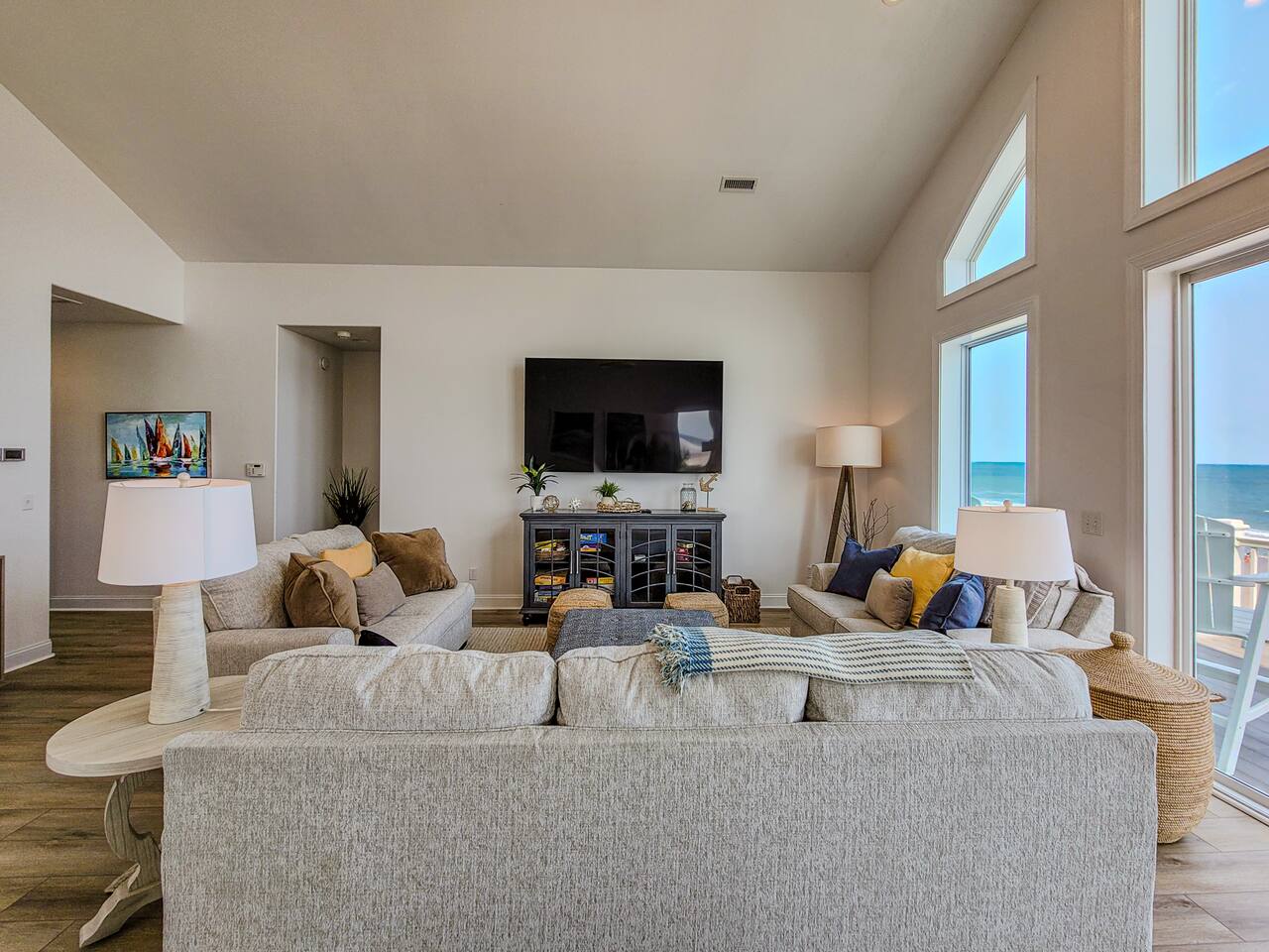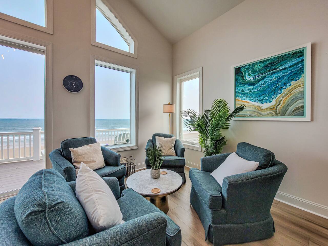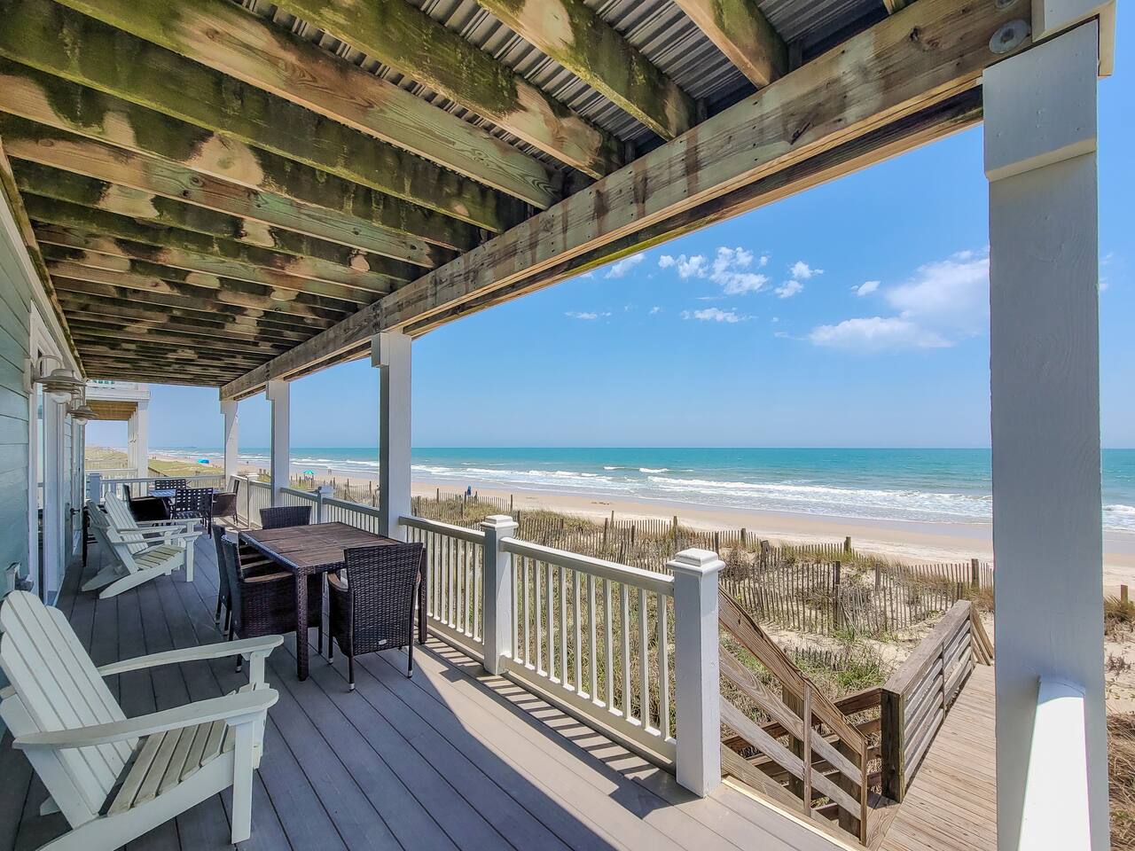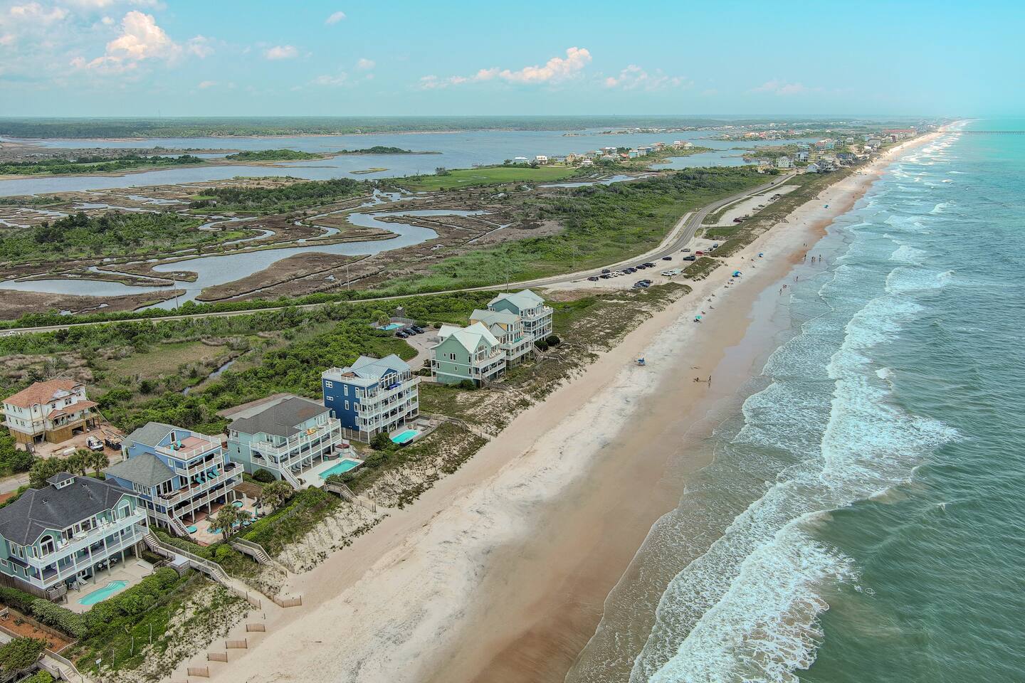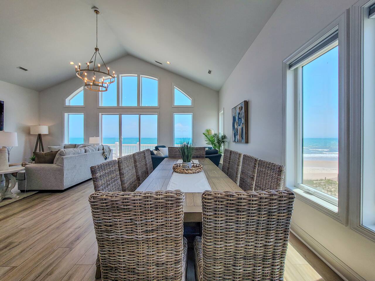 ๐ Bedrooms & Layout 6 Bedrooms | Sleeps 18+ 2 King Bedrooms, 3 Queen Bedrooms, 1 Bunk Room with 3 twins, 1 full, and 1 twin trundle, and Loft with queen sleeper sofa Bathrooms: 5 full bathrooms total, thoughtfully stocked with full-size shampoo, conditioner, and body wash + linens included! Floor 2: -King Bedroom with direct oceanfront balcony + ensuite bathroom -Queen Bedroom with direct oceanfront balcony + ensuite bathroom -Bunk Room (shared bath) -Queen Bedroom with balcony access (shared bath) Floor 3: -Oceanfront King Primary Suite with direct balcony access + Ensuite bathroom -Queen Bedroom with balcony access (full bathroom directly across the hall) ๐ฝ Living, Dining & Kitchen Located on the 3rd floor, the expansive open-concept kitchen, dining, and living area offers panoramic ocean views and space to gather: Dining table seats 12-14 with 4 more seats at the kitchen bar 3 plush couches + additional conversational seating area with 4 chairs 85โ Smart TV for movie nights and entertainment Fully stocked kitchen with brand new appliances + specialty kitchen items like a blender, Keurig, air fryer, extensive cookware, serving dishes, and more โ perfect for hosting large family meals ๐ฎ Entertainment Galore The ground-level thoughtfully designed game room is packed with fun: -2 arcade machines -Air hockey table -Pub table & full-size fridge Right outside the game room: -Lounge area with wet bar -Xbox gaming system for late-night gaming or rainy day fun ๐ Outdoor Oasis Step into your own private beachfront haven with: -Tiki bar + stools -Outdoor sectional and chairs -Beach games, beach chairs, 2 paddle boards, and a kayak -Gas grill for cookouts -Outdoor shower with full bath products โจ Comfort & Extras -Plush white linens, beach towels, and bath towels included -Sound machines in all bedrooms for a restful sleep -Coffee bar with drip + Keurig makers, K-Cups, sugar & creamer -Starter paper products included: toilet paper, paper towels, trash bags, dish soap, and laundry pods -Books & board games for all ages ๐พ Dog-Friendly! -We welcome your furry family members with Dog bowls, Leash, Waste bags, and Treats ๐ Bonus Amenities -Elevator access to 3 floors -EV charger -Dedicated workspace on the 4th floor + Queen sleeper sofa with incredible ocean views ๐ Unbeatable Views & Outdoor Spaces -Two large oceanfront decks (2nd & 3rd floors) with lounge seating on both levels -Dining table on the 2nd floor deck so you can dine al fresco The beach is just steps awayโyour private paradise awaits. This home has been thoughtfully designed to offer everything you need for a luxurious, fun-filled, and stress-free stay. Whether you're lounging on the deck with a cocktail, challenging friends to an air hockey match, or paddling out for a morning kayak, this is the luxury beach vacation you'll never forget.