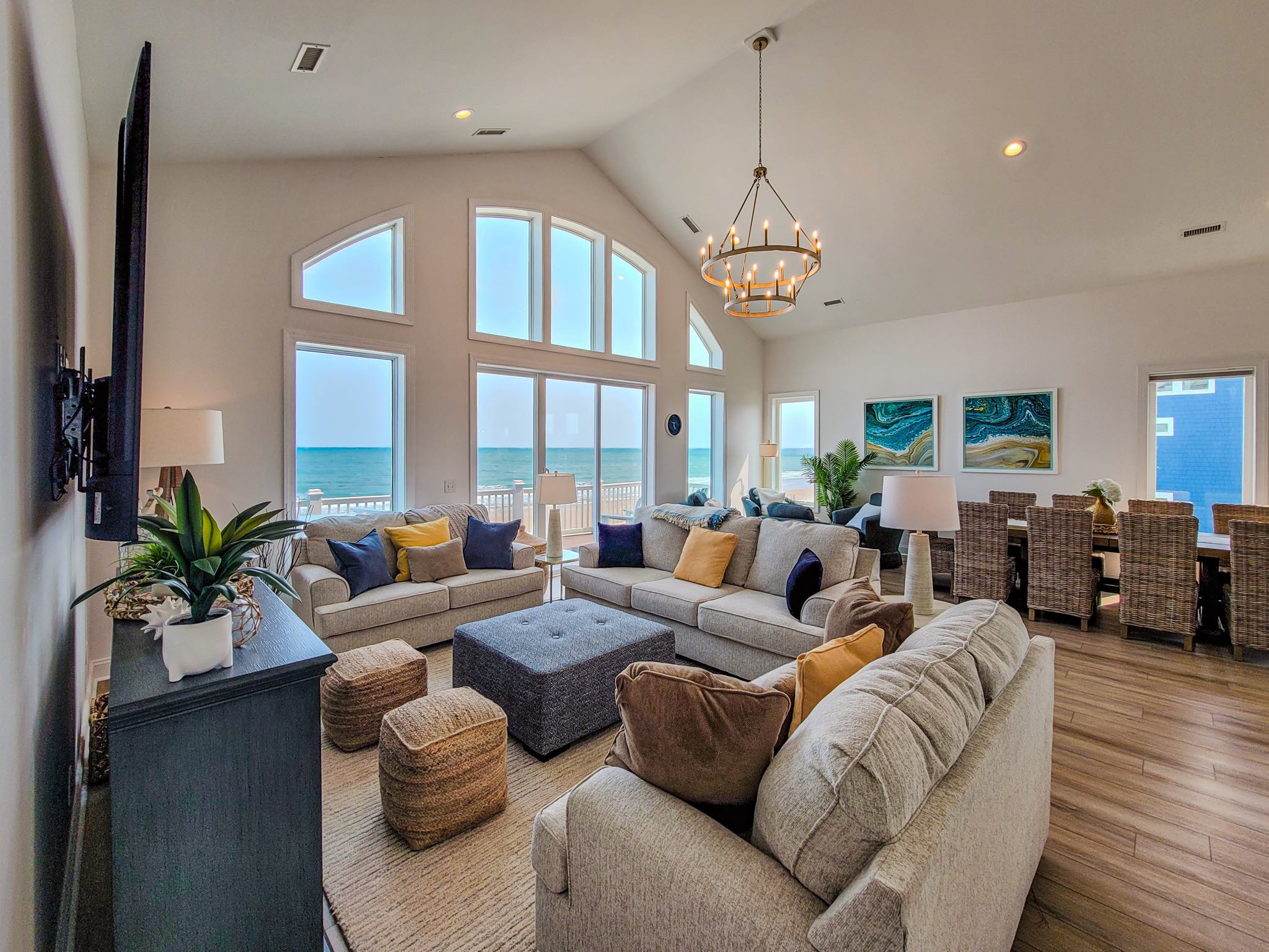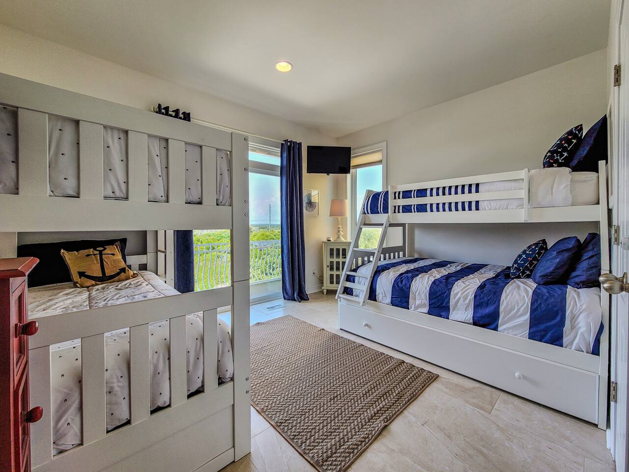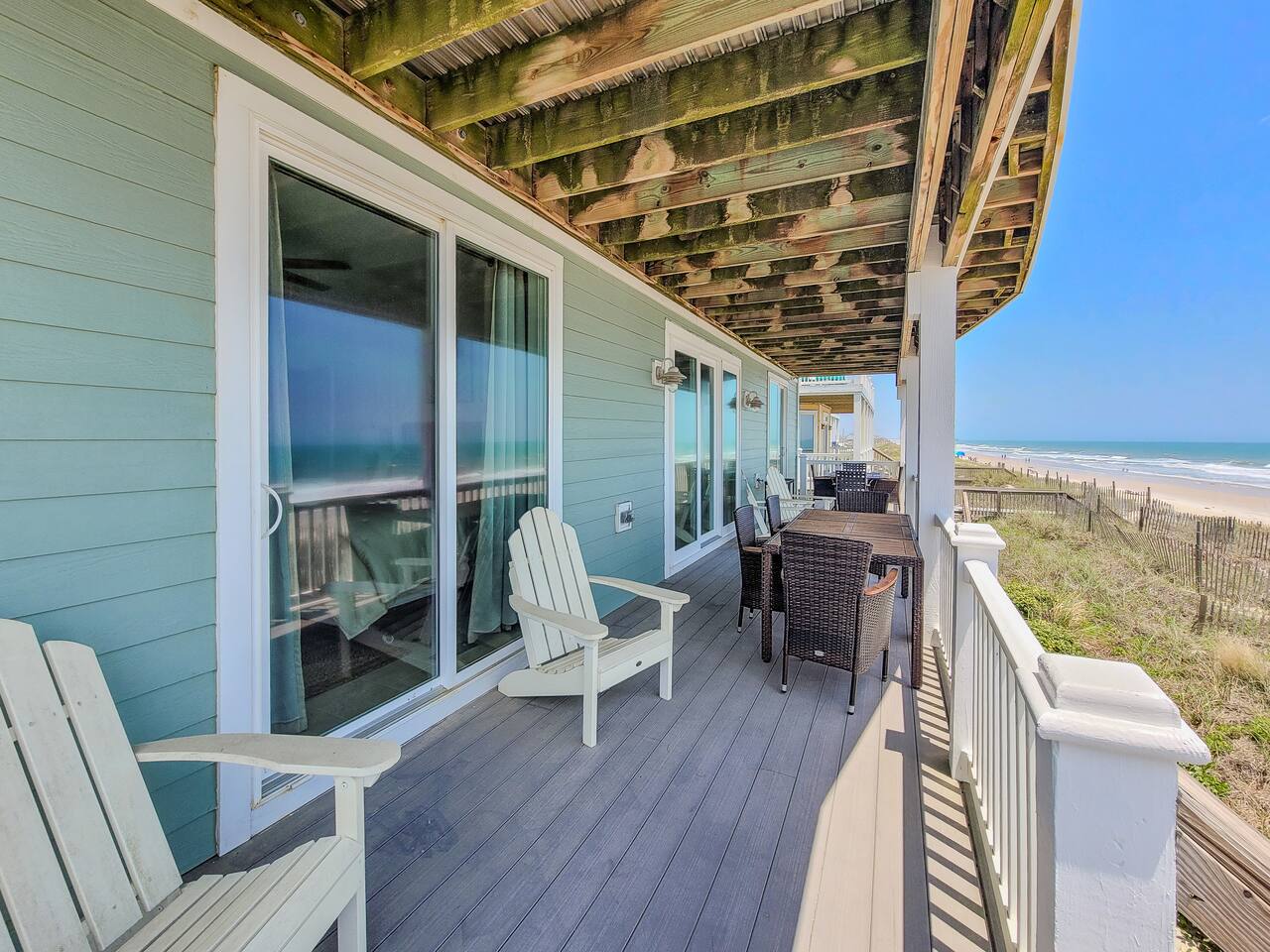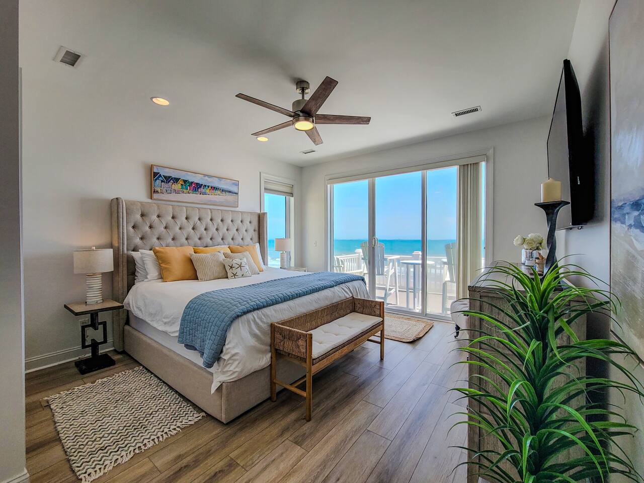๐ Bedrooms & Layout 6 Bedrooms | Sleeps 18+ 2 King Bedrooms, 3 Queen Bedrooms, 1 Bunk Room with 3 twins, 1 full, and 1 twin trundle, and Loft with queen sleeper sofa Bathrooms: 5 full bathrooms total, thoughtfully stocked with full-size shampoo, conditioner, and body wash + linens included! Floor 2: -King Bedroom with direct oceanfront balcony + ensuite bathroom -Queen Bedroom with direct oceanfront balcony + ensuite bathroom -Bunk Room (shared bath) -Queen Bedroom with balcony access (shared bath) Floor 3: -Oceanfront King Primary Suite with direct balcony access + Ensuite bathroom -Queen Bedroom with balcony access (full bathroom directly across the hall) ๐ฝ Living, Dining & Kitchen Located on the 3rd floor, the expansive open-concept kitchen, dining, and living area offers panoramic ocean views and space to gather: Dining table seats 12-14 with 4 more seats at the kitchen bar 3 plush couches + additional conversational seating area with 4 chairs 85โ Smart TV for movie nights and entertainment Fully stocked kitchen with brand new appliances + specialty kitchen items like a blender, Keurig, air fryer, extensive cookware, serving dishes, and more โ perfect for hosting large family meals ๐ฎ Entertainment Galore The ground-level thoughtfully designed game room is packed with fun: -2 arcade machines -Air hockey table -Pub table & full-size fridge Right outside the game room: -Lounge area with wet bar -Xbox gaming system for late-night gaming or rainy day fun ๐ Outdoor Oasis Step into your own private beachfront haven with: -Tiki bar + stools -Outdoor sectional and chairs -Beach games, beach chairs, 2 paddle boards, and a kayak -Gas grill for cookouts -Outdoor shower with full bath products โจ Comfort & Extras -Plush white linens, beach towels, and bath towels included -Sound machines in all bedrooms for a restful sleep -Coffee bar with drip + Keurig makers, K-Cups, sugar & creamer -Starter paper products included: toilet paper, paper towels, trash bags, dish soap, and laundry pods -Books & board games for all ages ๐พ Dog-Friendly! -We welcome your furry family members with Dog bowls, Leash, Waste bags, and Treats ๐ Bonus Amenities -Elevator access to 3 floors -EV charger -Dedicated workspace on the 4th floor + Queen sleeper sofa with incredible ocean views ๐ Unbeatable Views & Outdoor Spaces -Two large oceanfront decks (2nd & 3rd floors) with lounge seating on both levels -Dining table on the 2nd floor deck so you can dine al fresco The beach is just steps awayโyour private paradise awaits. This home has been thoughtfully designed to offer everything you need for a luxurious, fun-filled, and stress-free stay. Whether you're lounging on the deck with a cocktail, challenging friends to an air hockey match, or paddling out for a morning kayak, this is the luxury beach vacation you'll never forget.