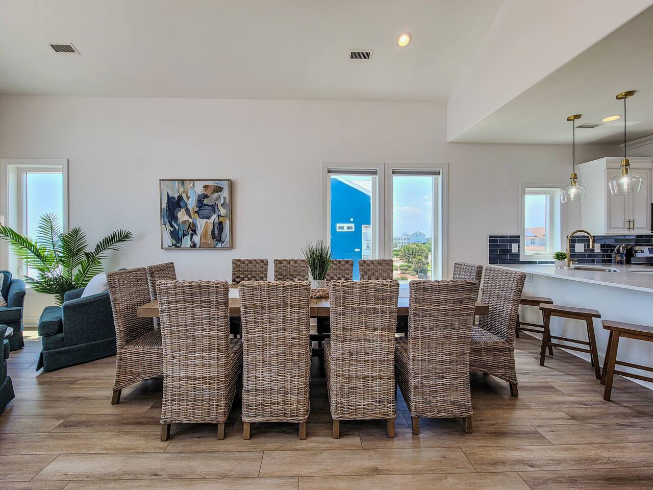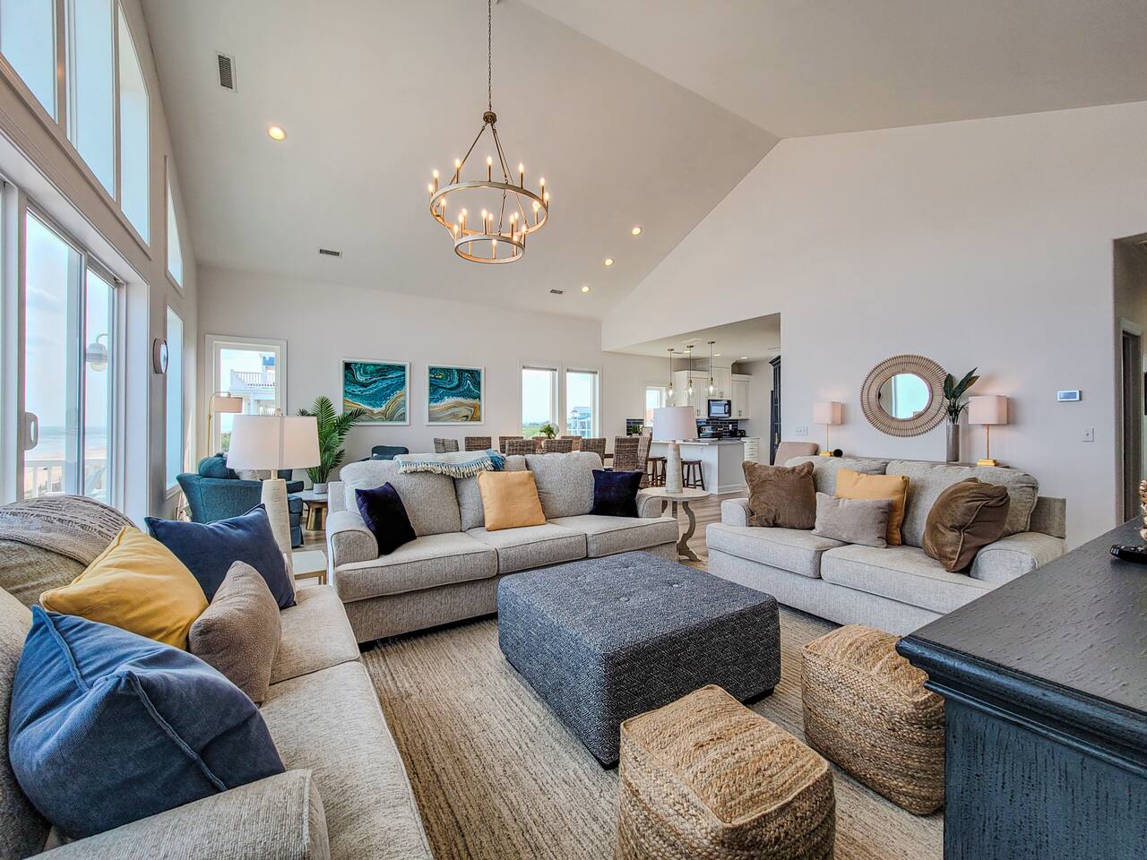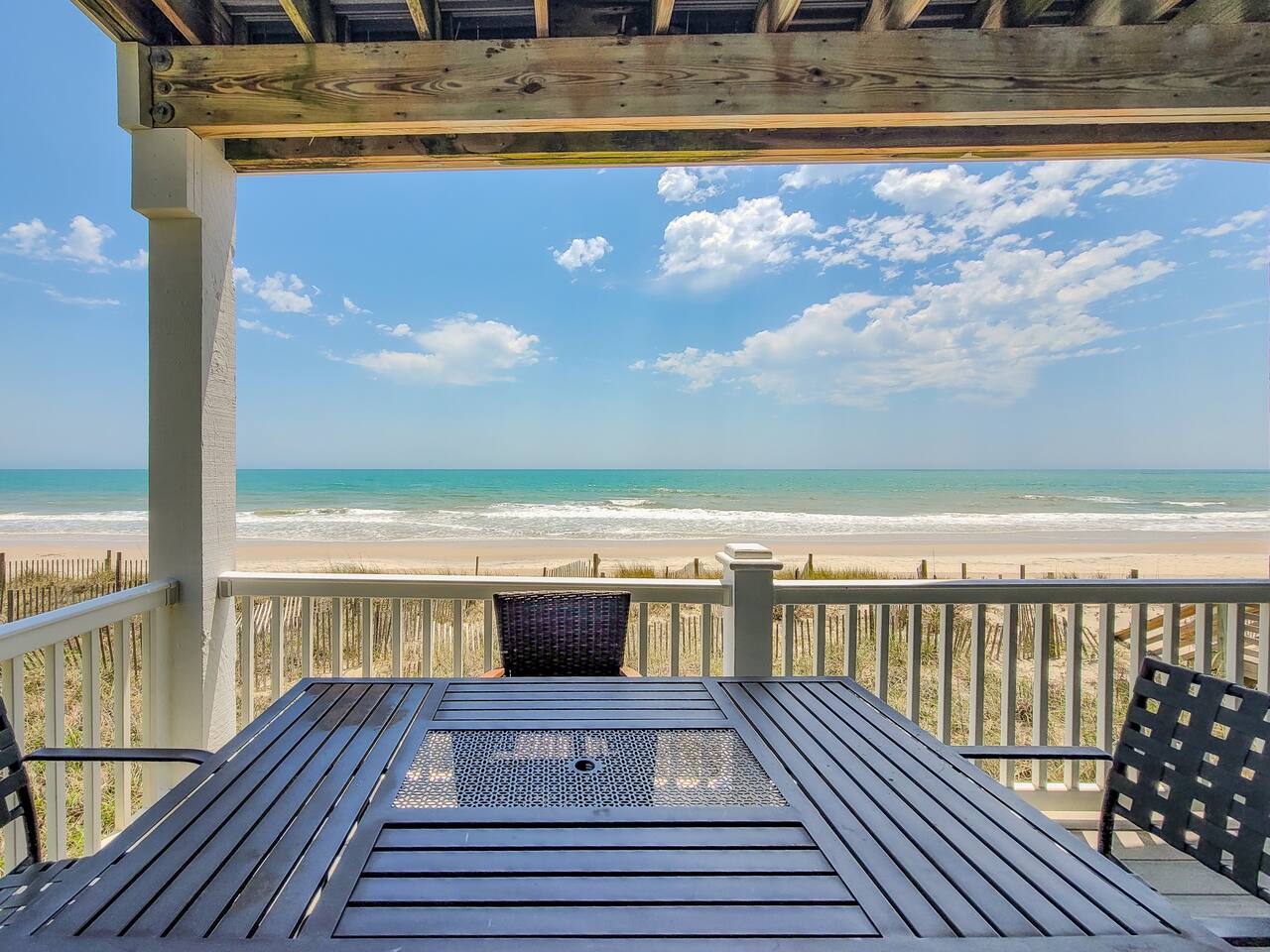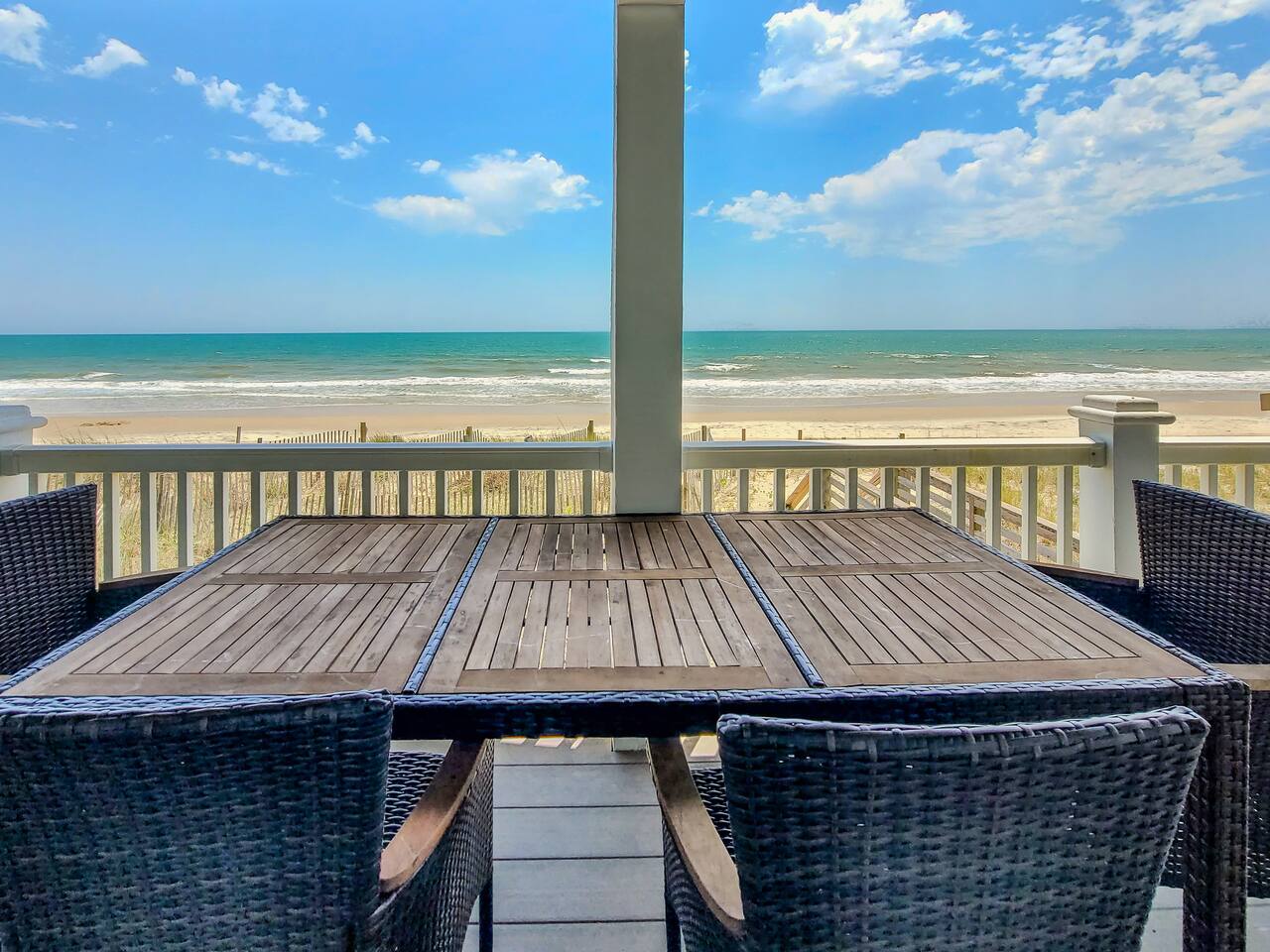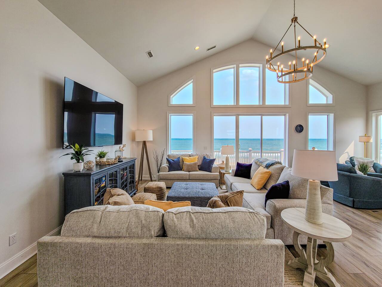 ๐ Bedrooms & Layout 6 Bedrooms | Sleeps 18+ 2 King Bedrooms, 3 Queen Bedrooms, 1 Bunk Room with 3 twins, 1 full, and 1 twin trundle, and Loft with queen sleeper sofa Bathrooms: 5 full bathrooms total, thoughtfully stocked with full-size shampoo, conditioner, and body wash + linens included! Floor 2: -King Bedroom with direct oceanfront balcony + ensuite bathroom -Queen Bedroom with direct oceanfront balcony + ensuite bathroom -Bunk Room (shared bath) -Queen Bedroom with balcony access (shared bath) Floor 3: -Oceanfront King Primary Suite with direct balcony access + Ensuite bathroom -Queen Bedroom with balcony access (full bathroom directly across the hall) ๐ฝ Living, Dining & Kitchen Located on the 3rd floor, the expansive open-concept kitchen, dining, and living area offers panoramic ocean views and space to gather: Dining table seats 12-14 with 4 more seats at the kitchen bar 3 plush couches + additional conversational seating area with 4 chairs 85โ Smart TV for movie nights and entertainment Fully stocked kitchen with brand new appliances + specialty kitchen items like a blender, Keurig, air fryer, extensive cookware, serving dishes, and more โ perfect for hosting large family meals ๐ฎ Entertainment Galore The ground-level thoughtfully designed game room is packed with fun: -2 arcade machines -Air hockey table -Pub table & full-size fridge Right outside the game room: -Lounge area with wet bar -Xbox gaming system for late-night gaming or rainy day fun ๐ Outdoor Oasis Step into your own private beachfront haven with: -Tiki bar + stools -Outdoor sectional and chairs -Beach games, beach chairs, 2 paddle boards, and a kayak -Gas grill for cookouts -Outdoor shower with full bath products โจ Comfort & Extras -Plush white linens, beach towels, and bath towels included -Sound machines in all bedrooms for a restful sleep -Coffee bar with drip + Keurig makers, K-Cups, sugar & creamer -Starter paper products included: toilet paper, paper towels, trash bags, dish soap, and laundry pods -Books & board games for all ages ๐พ Dog-Friendly! -We welcome your furry family members with Dog bowls, Leash, Waste bags, and Treats ๐ Bonus Amenities -Elevator access to 3 floors -EV charger -Dedicated workspace on the 4th floor + Queen sleeper sofa with incredible ocean views ๐ Unbeatable Views & Outdoor Spaces -Two large oceanfront decks (2nd & 3rd floors) with lounge seating on both levels -Dining table on the 2nd floor deck so you can dine al fresco The beach is just steps awayโyour private paradise awaits. This home has been thoughtfully designed to offer everything you need for a luxurious, fun-filled, and stress-free stay. Whether you're lounging on the deck with a cocktail, challenging friends to an air hockey match, or paddling out for a morning kayak, this is the luxury beach vacation you'll never forget.