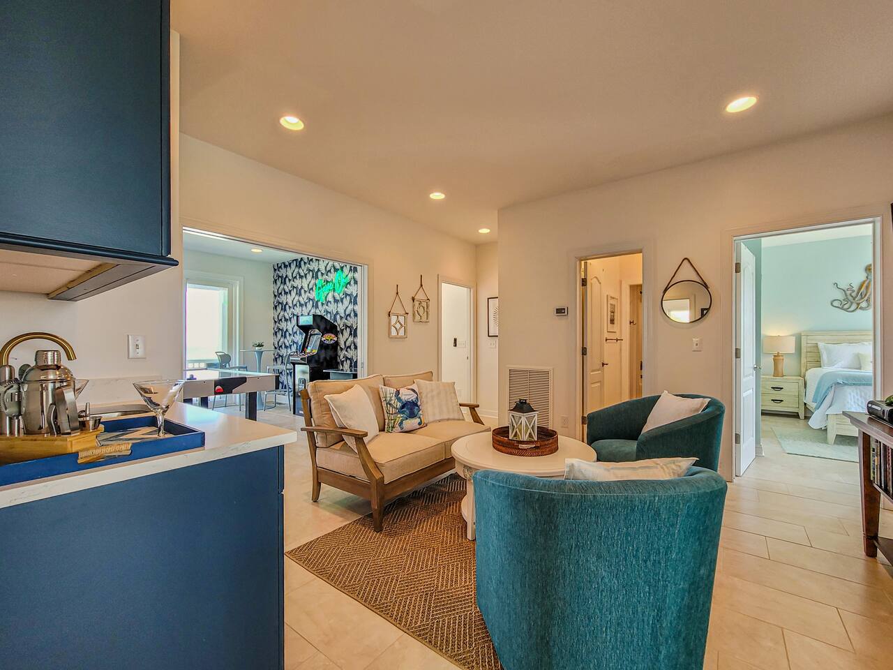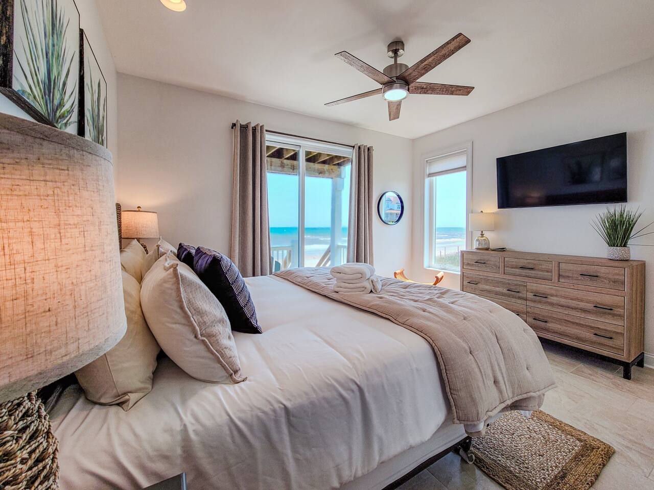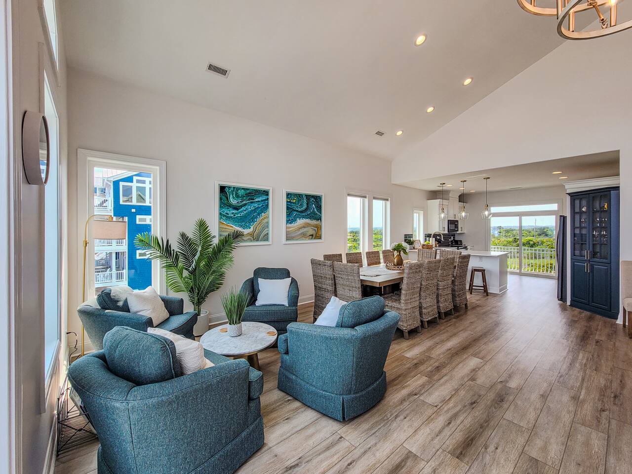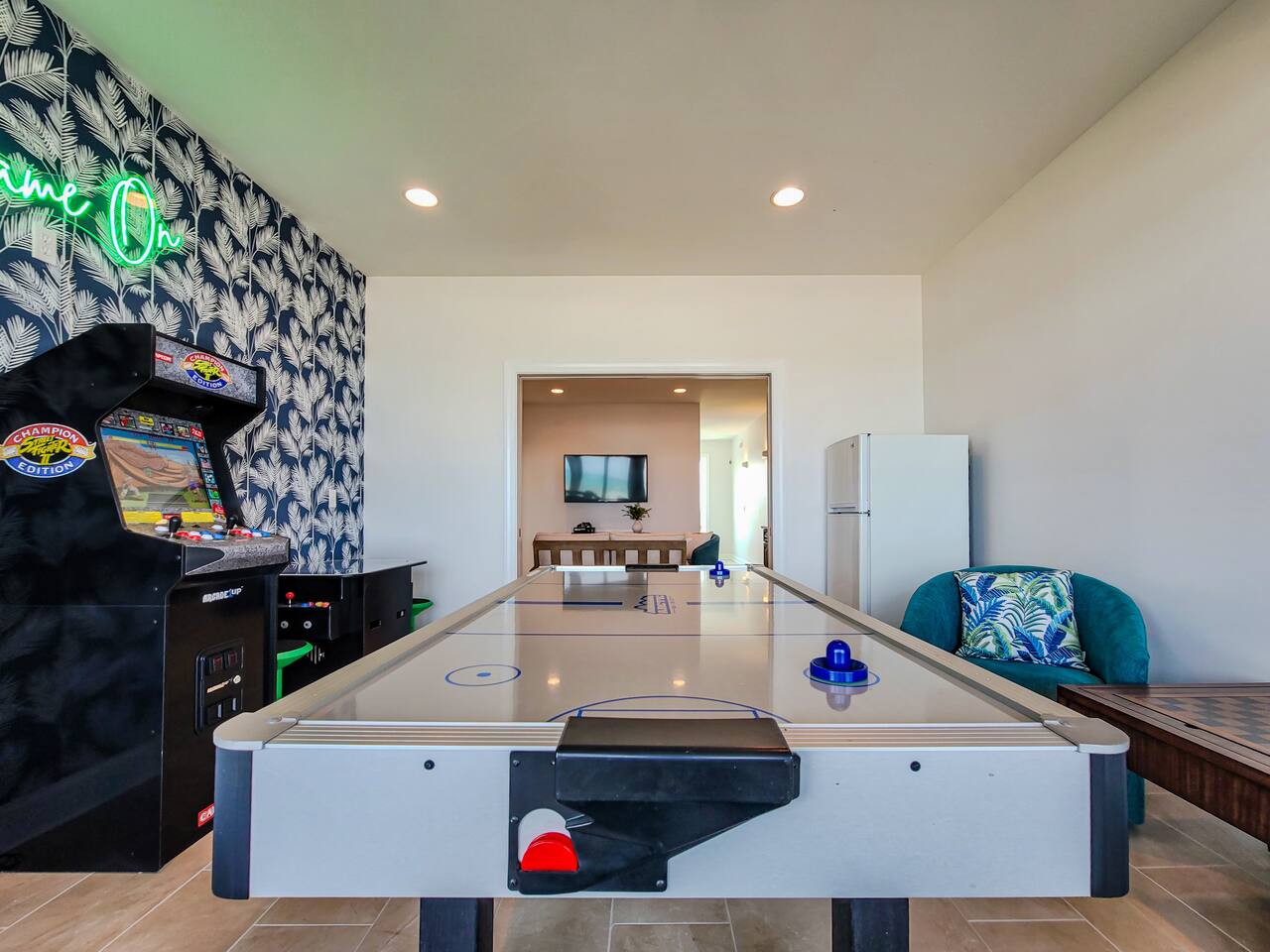 ๐ Bedrooms & Layout 6 Bedrooms | Sleeps 18+ 2 King Bedrooms, 3 Queen Bedrooms, 1 Bunk Room with 3 twins, 1 full, and 1 twin trundle, and Loft with queen sleeper sofa Bathrooms: 5 full bathrooms total, thoughtfully stocked with full-size shampoo, conditioner, and body wash + linens included! Floor 2: -King Bedroom with direct oceanfront balcony + ensuite bathroom -Queen Bedroom with direct oceanfront balcony + ensuite bathroom -Bunk Room (shared bath) -Queen Bedroom with balcony access (shared bath) Floor 3: -Oceanfront King Primary Suite with direct balcony access + Ensuite bathroom -Queen Bedroom with balcony access (full bathroom directly across the hall) ๐ฝ Living, Dining & Kitchen Located on the 3rd floor, the expansive open-concept kitchen, dining, and living area offers panoramic ocean views and space to gather: Dining table seats 12-14 with 4 more seats at the kitchen bar 3 plush couches + additional conversational seating area with 4 chairs 85โ Smart TV for movie nights and entertainment Fully stocked kitchen with brand new appliances + specialty kitchen items like a blender, Keurig, air fryer, extensive cookware, serving dishes, and more โ perfect for hosting large family meals ๐ฎ Entertainment Galore The ground-level thoughtfully designed game room is packed with fun: -2 arcade machines -Air hockey table -Pub table & full-size fridge Right outside the game room: -Lounge area with wet bar -Xbox gaming system for late-night gaming or rainy day fun ๐ Outdoor Oasis Step into your own private beachfront haven with: -Tiki bar + stools -Outdoor sectional and chairs -Beach games, beach chairs, 2 paddle boards, and a kayak -Gas grill for cookouts -Outdoor shower with full bath products โจ Comfort & Extras -Plush white linens, beach towels, and bath towels included -Sound machines in all bedrooms for a restful sleep -Coffee bar with drip + Keurig makers, K-Cups, sugar & creamer -Starter paper products included: toilet paper, paper towels, trash bags, dish soap, and laundry pods -Books & board games for all ages ๐พ Dog-Friendly! -We welcome your furry family members with Dog bowls, Leash, Waste bags, and Treats ๐ Bonus Amenities -Elevator access to 3 floors -EV charger -Dedicated workspace on the 4th floor + Queen sleeper sofa with incredible ocean views ๐ Unbeatable Views & Outdoor Spaces -Two large oceanfront decks (2nd & 3rd floors) with lounge seating on both levels -Dining table on the 2nd floor deck so you can dine al fresco The beach is just steps awayโyour private paradise awaits. This home has been thoughtfully designed to offer everything you need for a luxurious, fun-filled, and stress-free stay. Whether you're lounging on the deck with a cocktail, challenging friends to an air hockey match, or paddling out for a morning kayak, this is the luxury beach vacation you'll never forget.